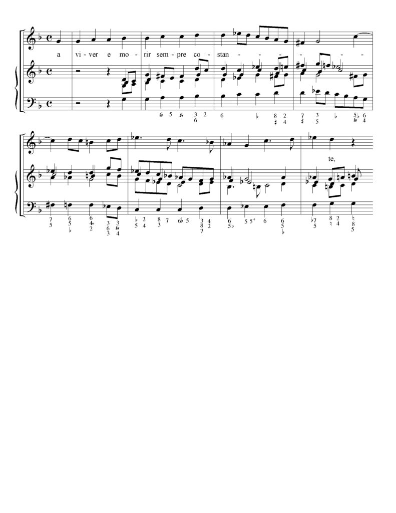 Ex. 13.27 Antonio Biffi, recitative and arioso “Hore brevi e fatale” from cantata Amante moribondo, mm. 13–20, with bass figures by J. S. Bach and their implied realization